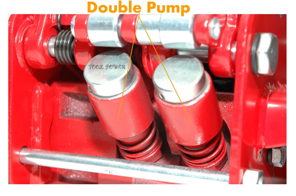 • DOUBLE PUMP = Saves time in quickly engaging the jack to lift